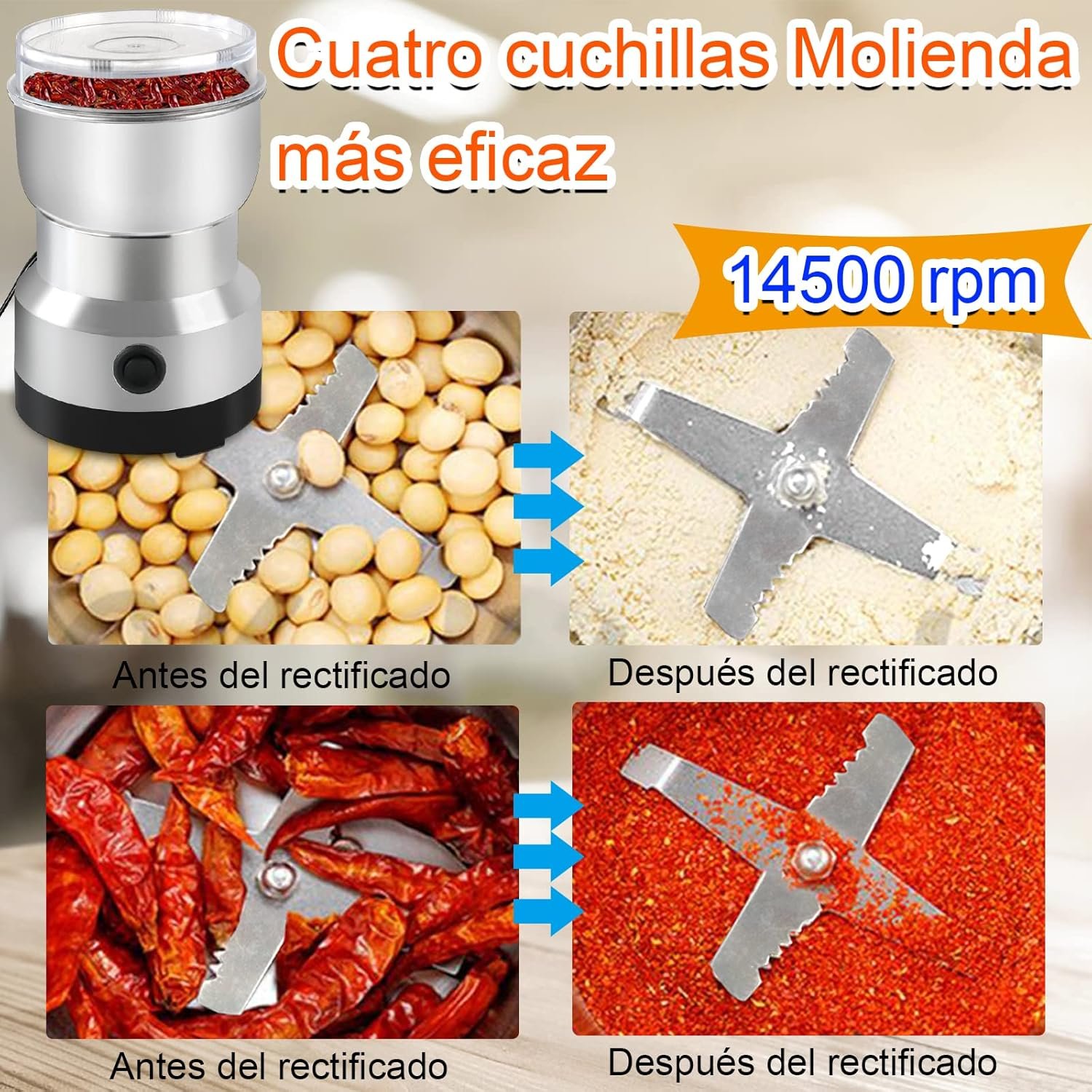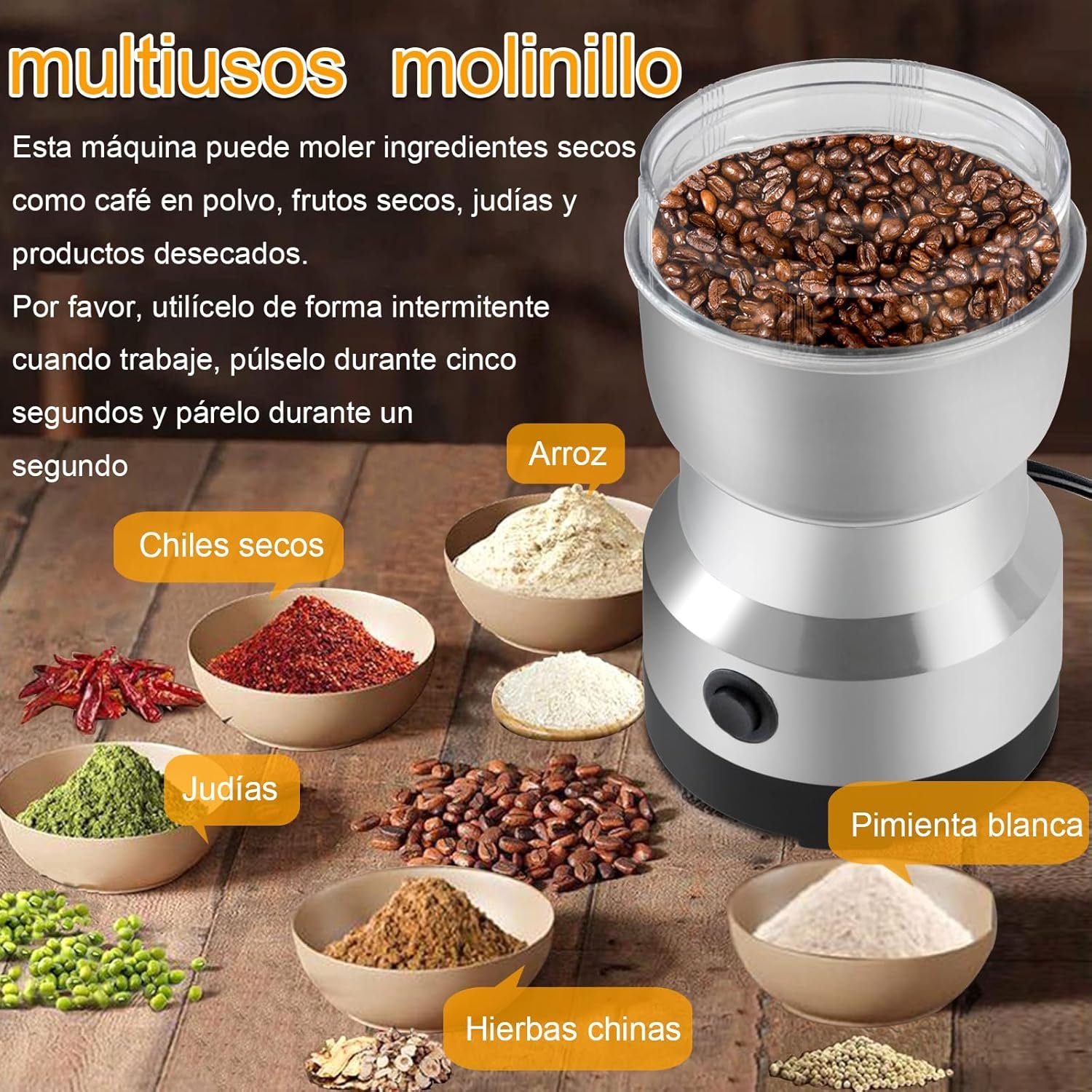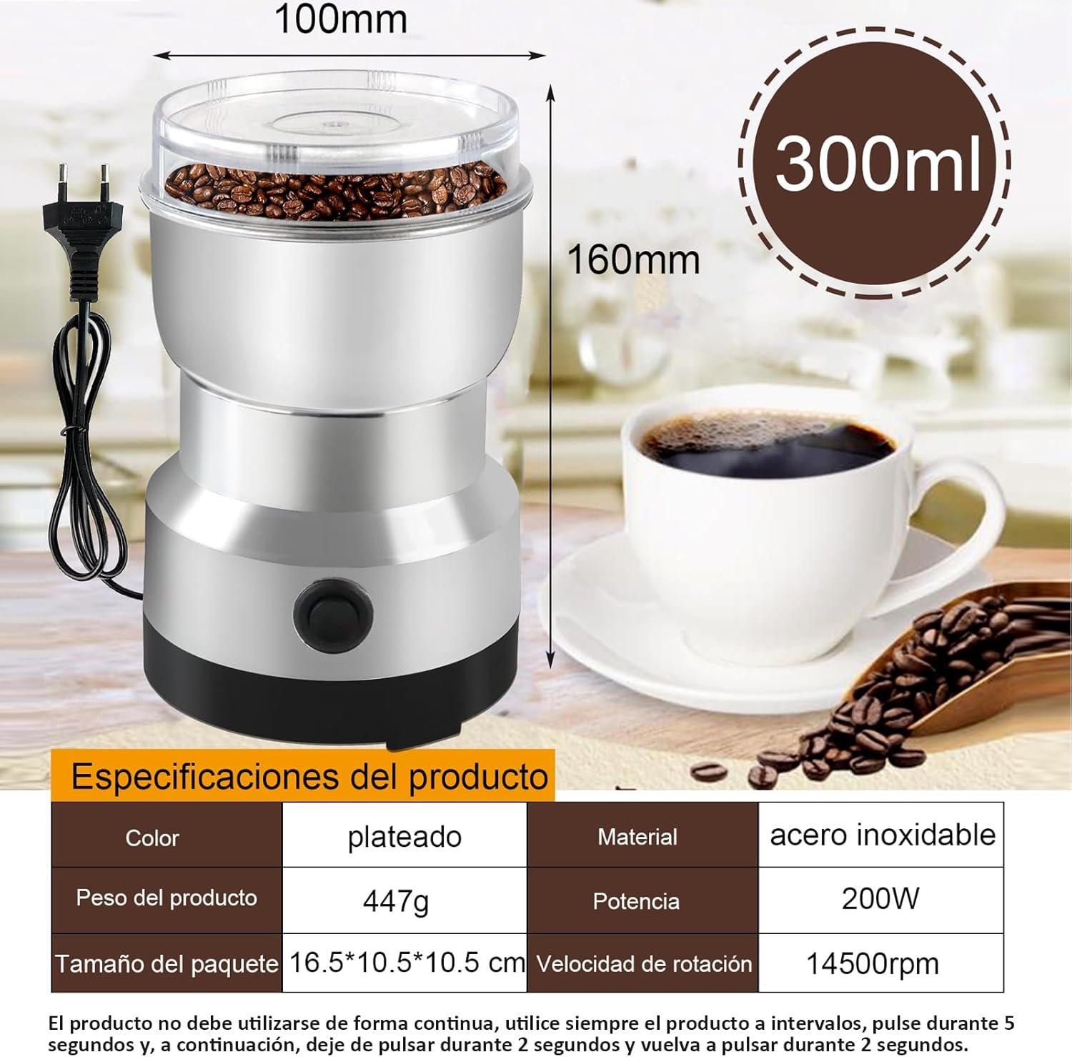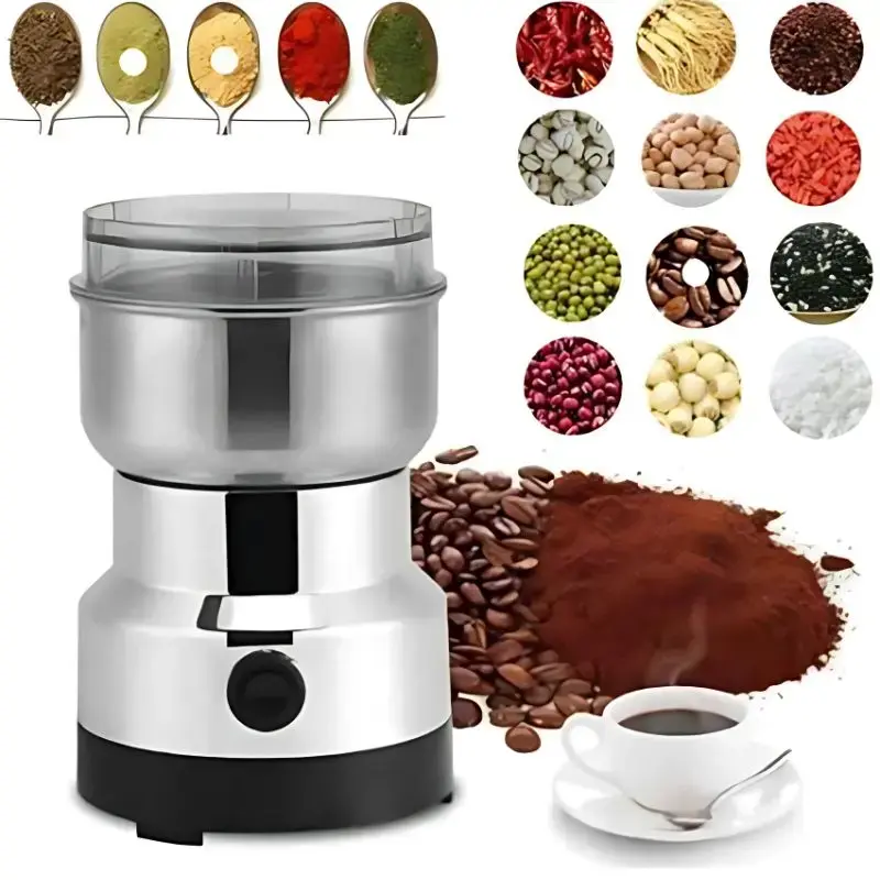 Préparez facilement vos grains de café fraîchement moulus et vos épices préférées avec ce moulin électrique robuste en acier inoxydable. Idéal pour une mouture rapide et uniforme à la maison.